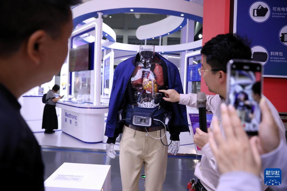 9月24日,工作人員為參觀者介紹植入式左心室輔助系統。