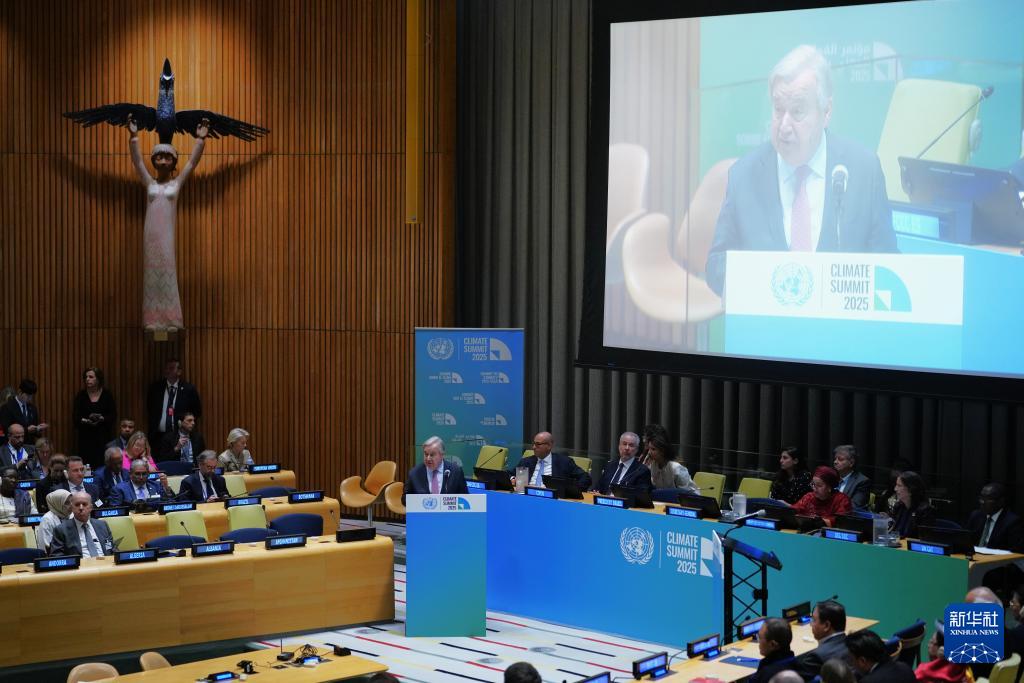 9月24日,在位于紐約的聯(lián)合國(guó)總部,聯(lián)合國(guó)秘書長(zhǎng)古特雷斯在聯(lián)合國(guó)氣候變化峰會(huì)上致辭。新華社記者 吳曉凌 攝