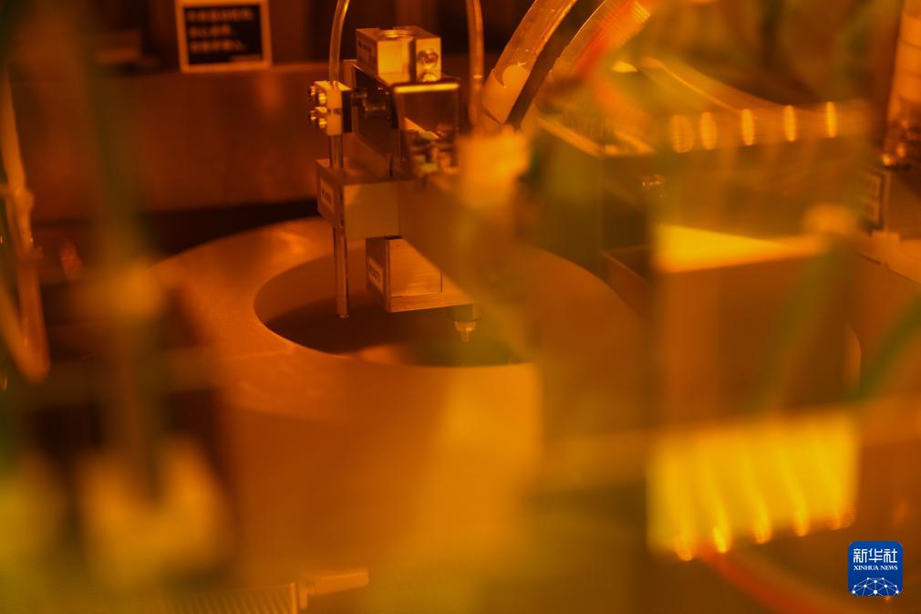這是9月25日拍攝的上海交通大學無錫光子芯片研究院光子芯片中試線光刻間內的涂膠作業。