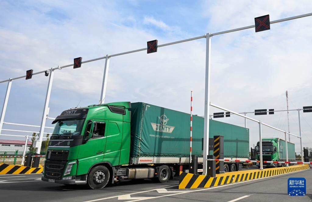 9月17日,來自俄羅斯的貨車從位于新疆塔城地區的巴克圖口岸海關集中查驗場地出關。