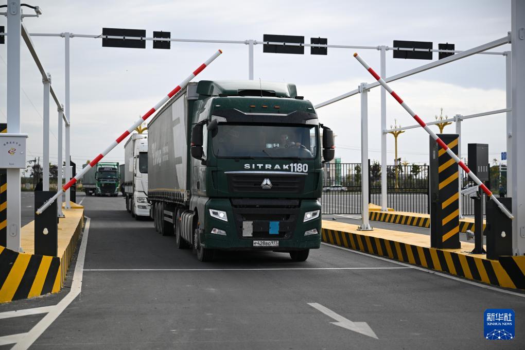 9月17日,來自俄羅斯的貨車從位于新疆塔城地區的巴克圖口岸海關集中查驗場地出關。