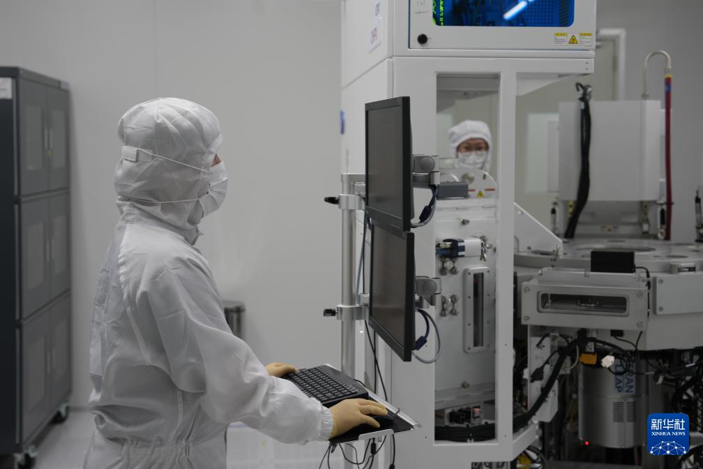 9月25日,工程師在上海交通大學無錫光子芯片研究院光子芯片中試線刻蝕間工作。