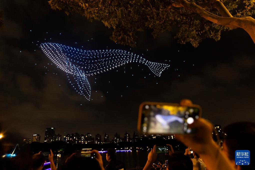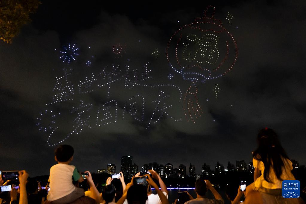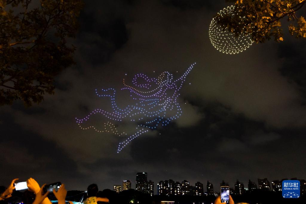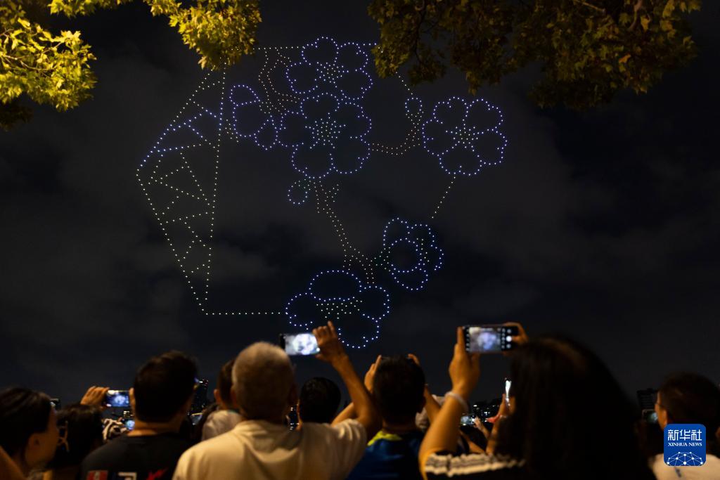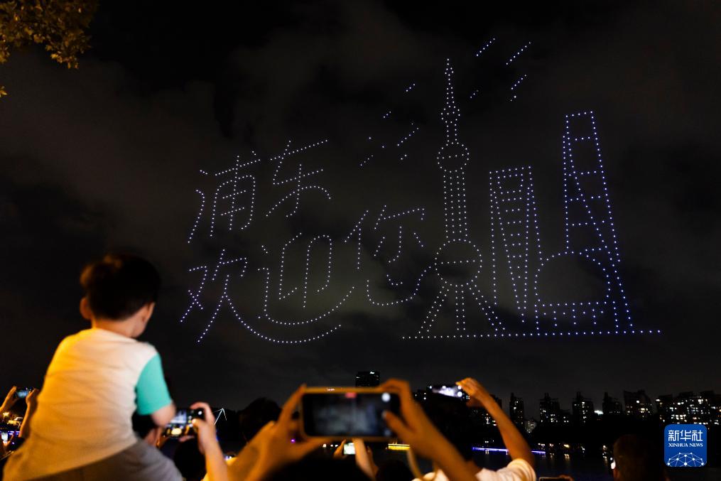 當晚,"世紀璀璨——無人機燈光秀"表演在上海世紀公園舉行,1000架無人機在世紀公園鏡天湖上空組成"國慶快樂""盛世華誕 家國同慶""浦東歡迎您"等字樣和玉蘭、荷花、梅花等花卉圖案,在國慶假期即將到來之際,為市民游客獻上一場視覺盛宴。