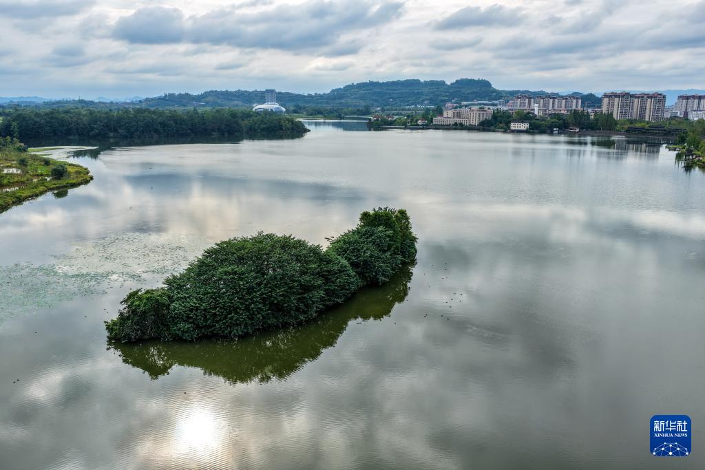 這是9月26日在重慶雙桂湖國(guó)家濕地公園拍攝的鳥群聚集的"鳥島"(無(wú)人機(jī)照片)。
