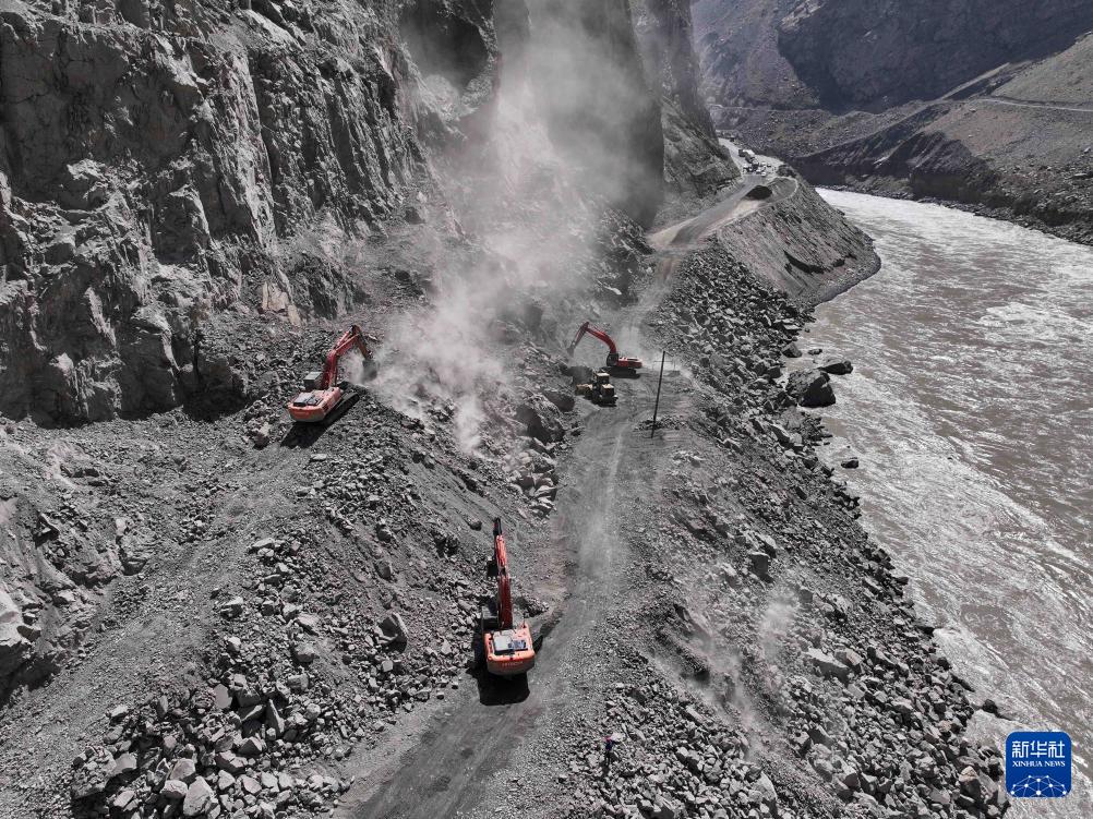 沿途記者看見,大部分山體石質(zhì)松脆,幾乎沒有任何植被,坍塌是家常便飯,在上面修路可謂難上加難。當?shù)厝顺Uf,老天爺不賞飯吃。但中國建設者們偏不信這個邪。