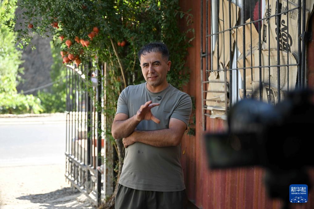 9月11日,在塔吉克斯坦卡拉依洪姆村附近,村民基什瓦爾接受新華社記者采訪。 新華社記者 李任滋 攝