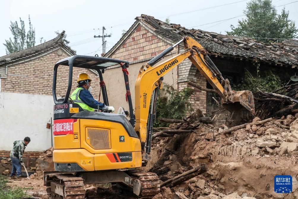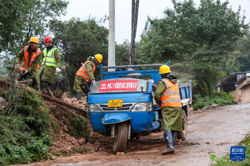9月28日,在定西市漳縣武陽鎮汪家河村盧家屲社,中鐵二十局市政工程有限公司搶險人員在進行清堵排險作業。