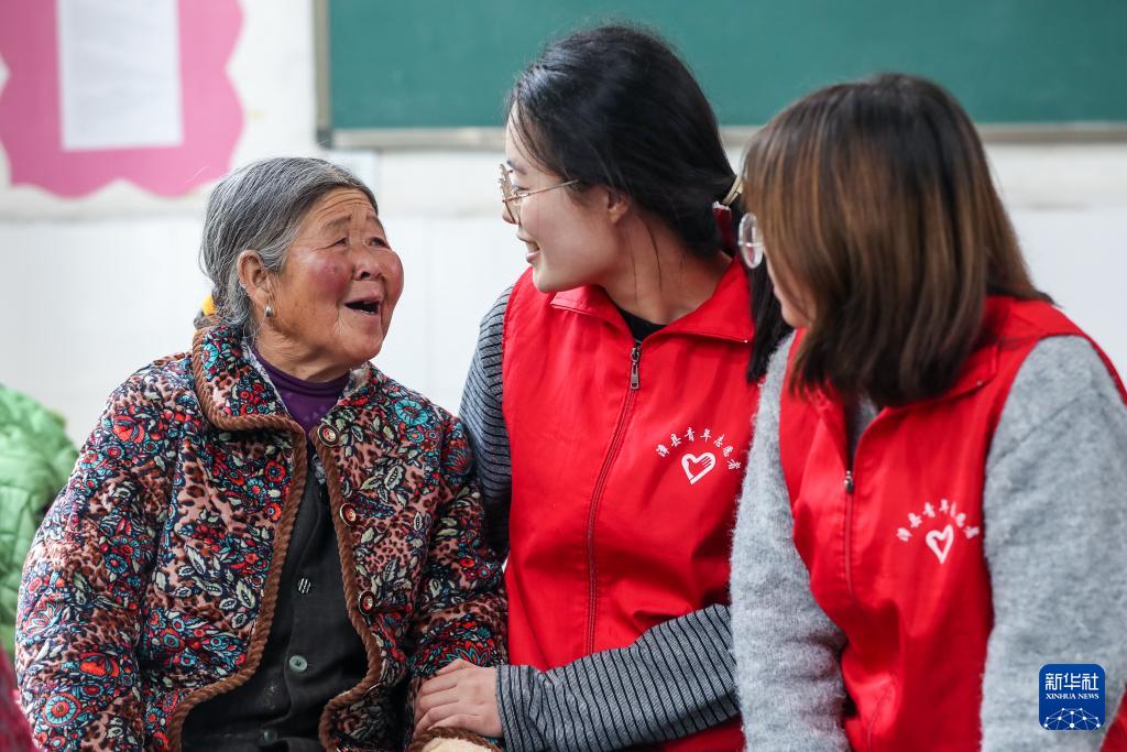 9月28日,在定西市漳縣木林小學安置點宿舍內,志愿者與受災群眾交流。