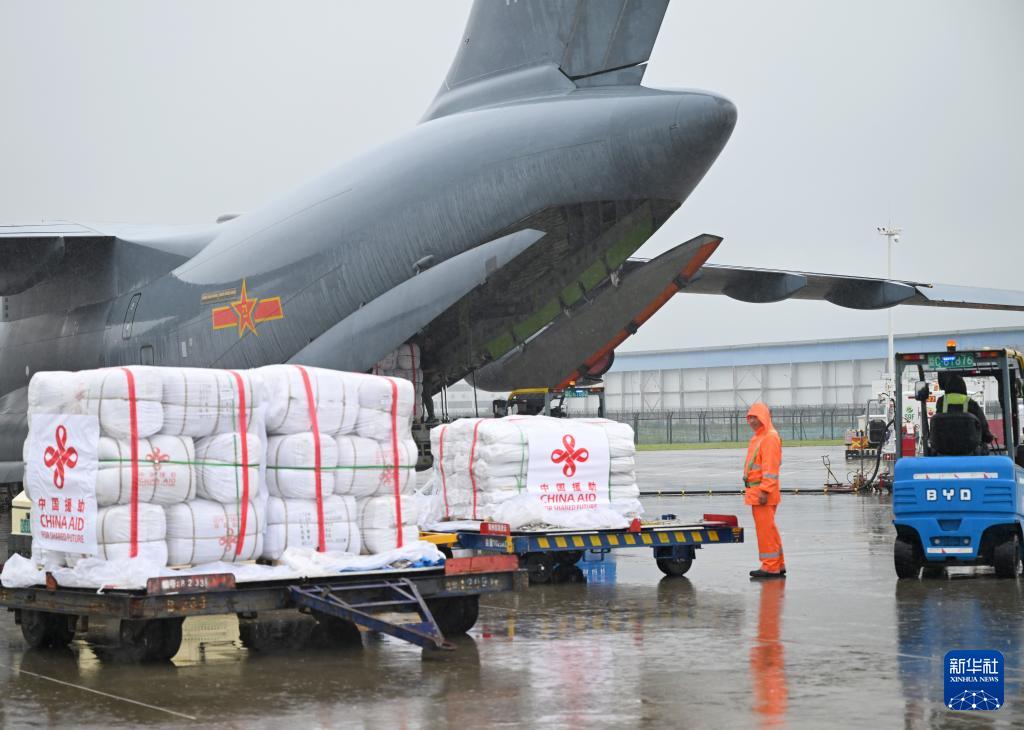 中國政府向巴基斯坦提供的首批抗洪救災緊急物資9月28日從鄭州新鄭國際機場啟運。據介紹,首批救災物資主要包括帳篷、毛毯等,由中國空軍兩架運-20飛機運往巴基斯坦首都伊斯蘭堡。