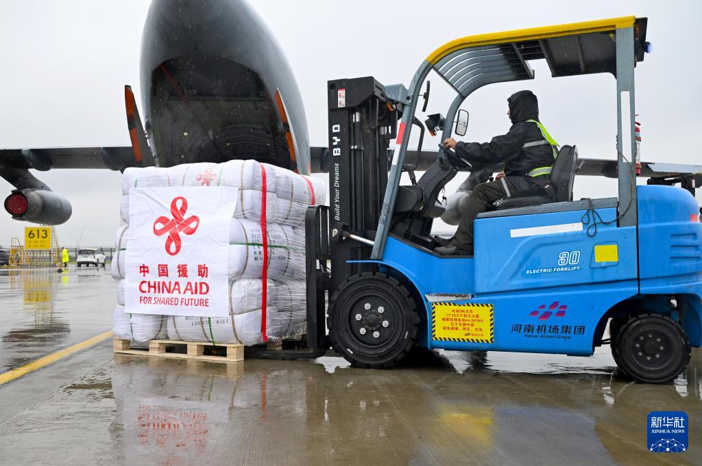 中國政府向巴基斯坦提供的首批抗洪救災緊急物資9月28日從鄭州新鄭國際機場啟運。據介紹,首批救災物資主要包括帳篷、毛毯等,由中國空軍兩架運-20飛機運往巴基斯坦首都伊斯蘭堡。