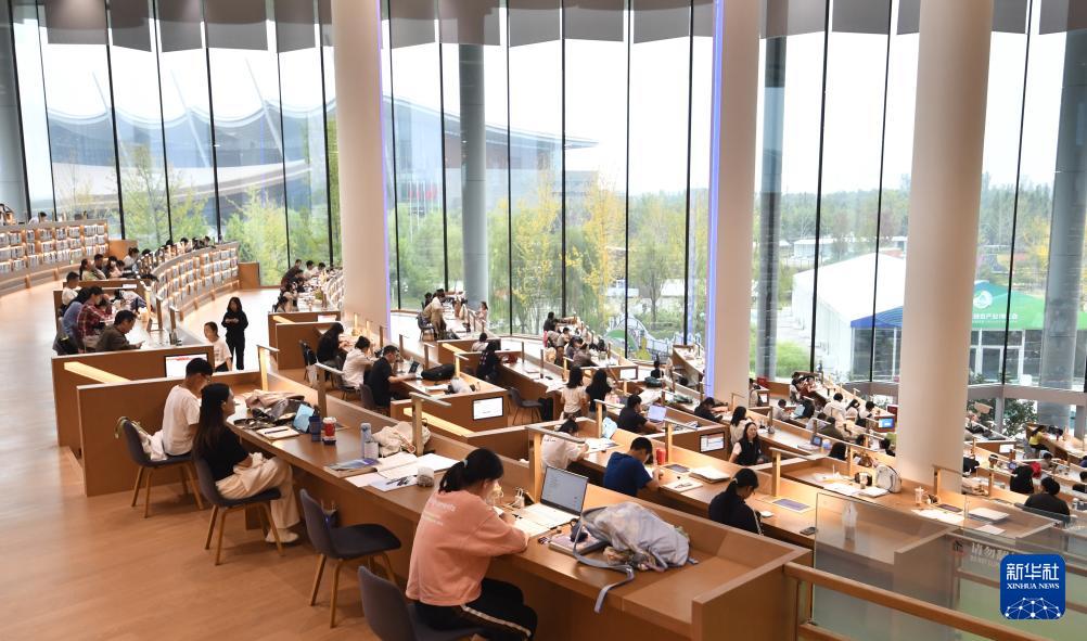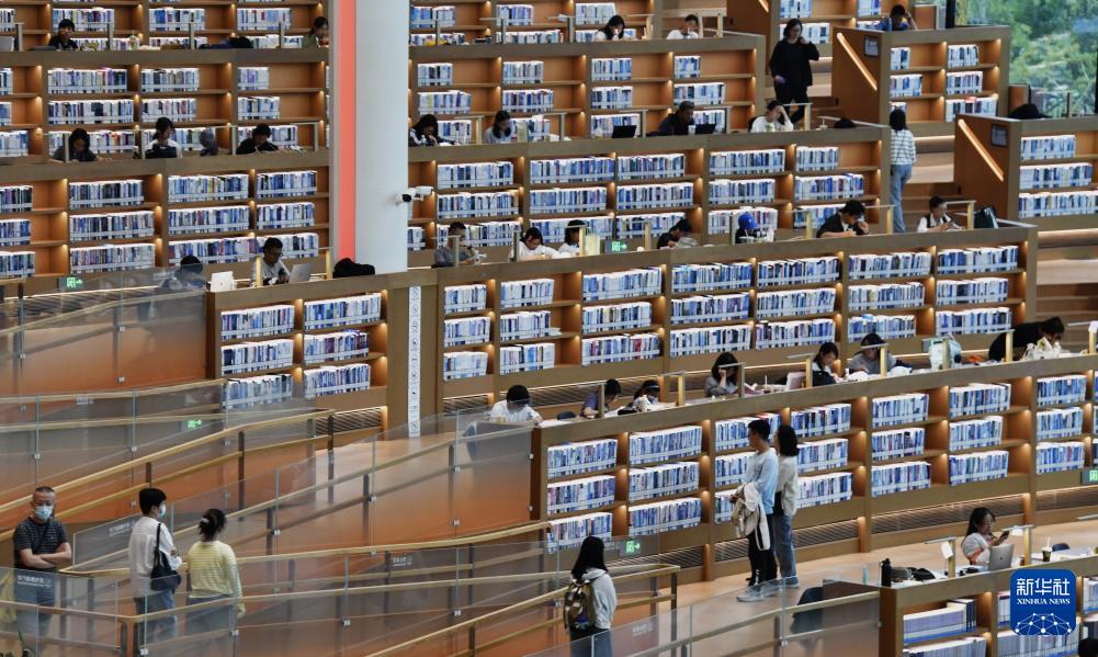 國慶假期,市民來到北京城市圖書館讀書學習,在書香和靜謐中度過假期。