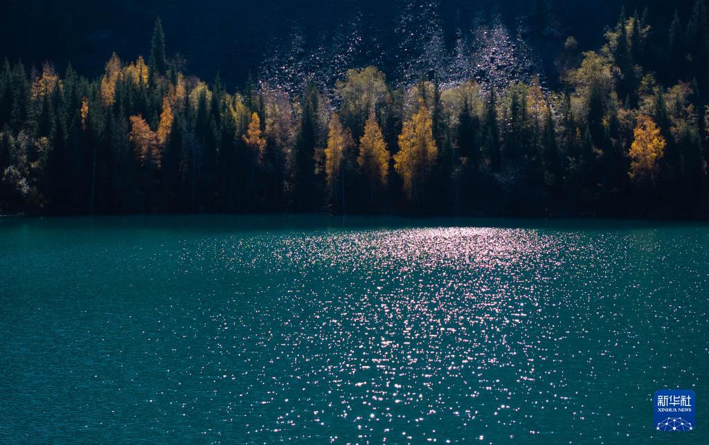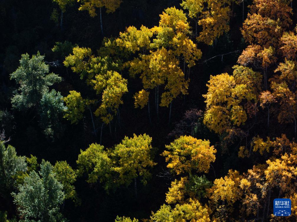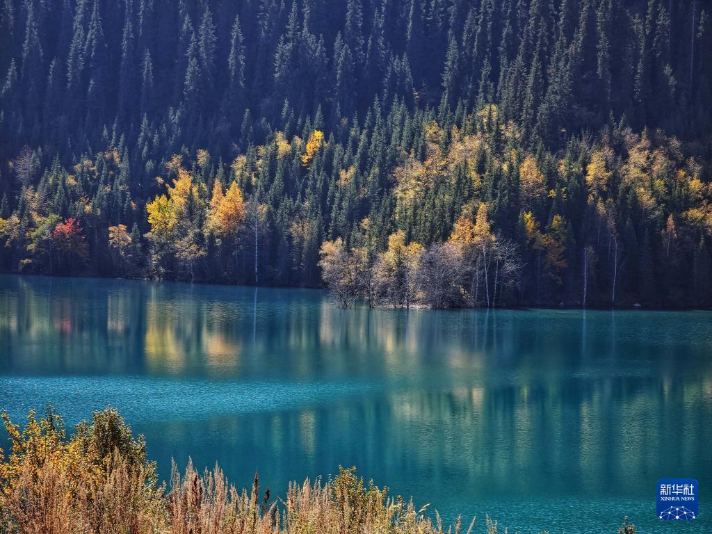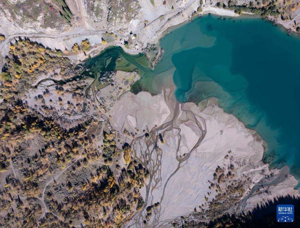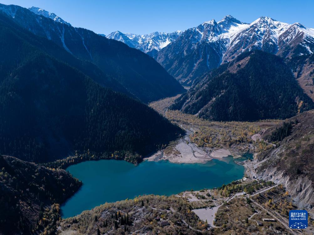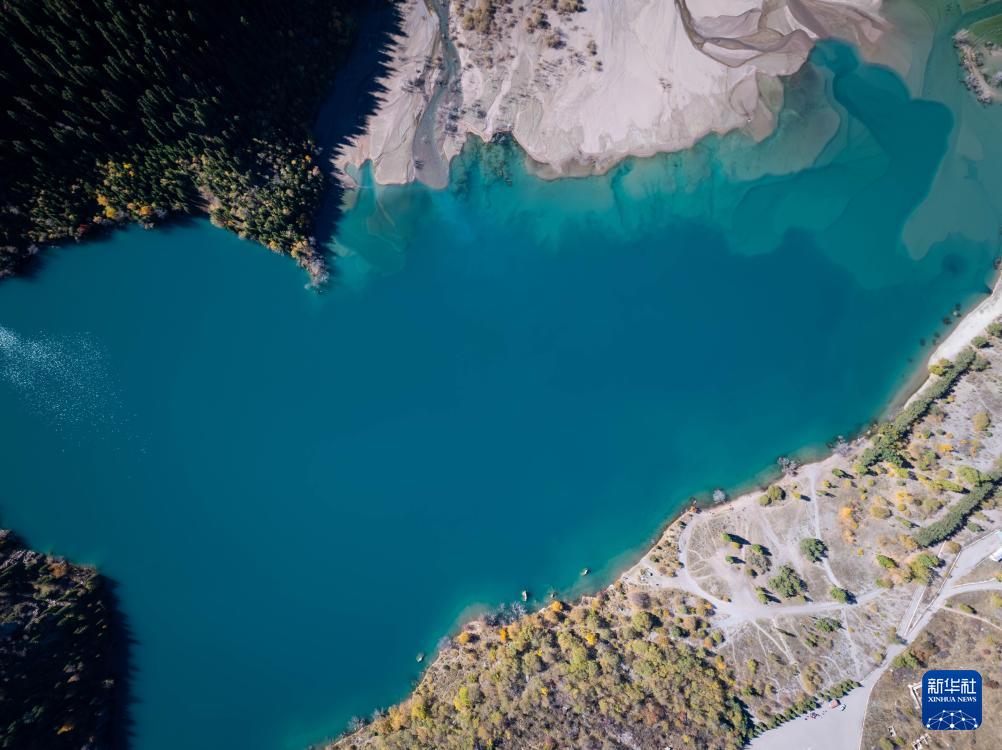 這是10月4日在哈薩克斯坦阿拉木圖州拍攝的伊塞克峽谷秋日風(fēng)光(無(wú)人機(jī)照片)。