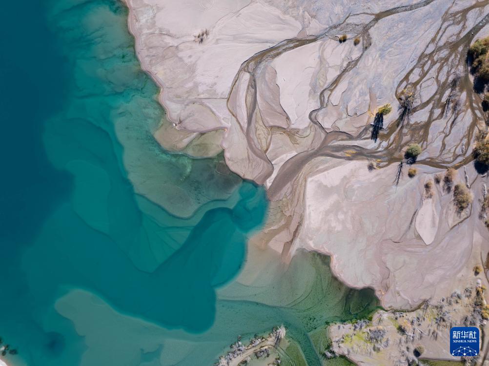 這是10月4日在哈薩克斯坦阿拉木圖州拍攝的伊塞克湖秋日風(fēng)光(無(wú)人機(jī)照片)。