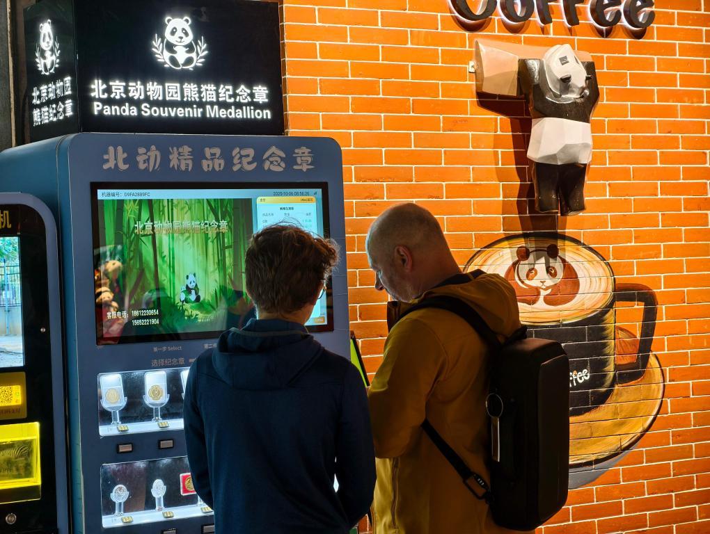 10月6日,外國游客購買北京動物園熊貓紀念章。新華社記者 王修楠 攝