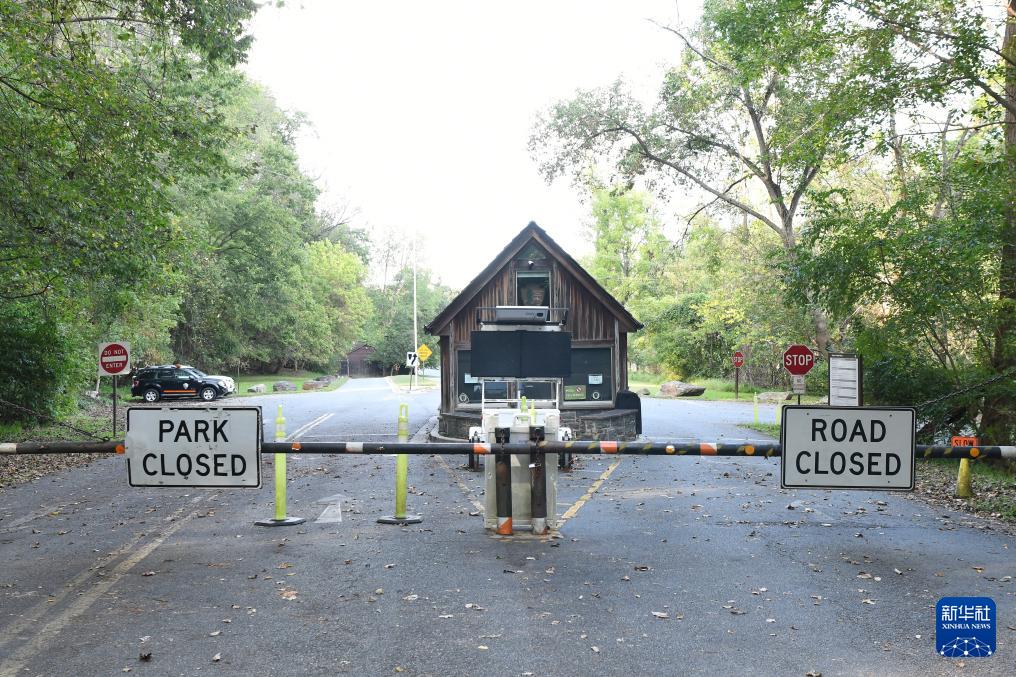 10月3日,在美國弗吉尼亞州費爾法克斯,受聯邦政府“停擺”影響,通往大瀑布公園游客中心的道路關閉。