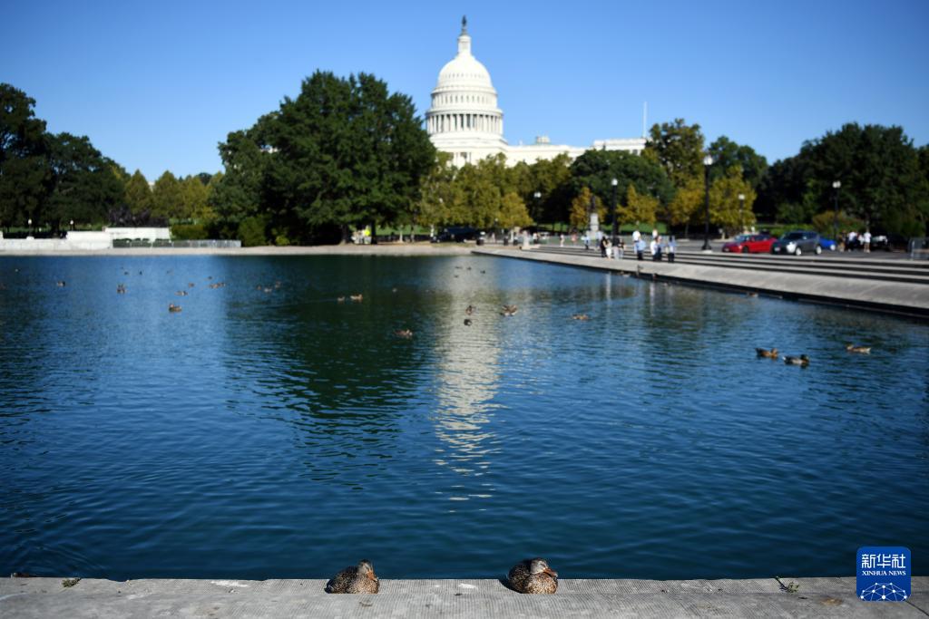 10月5日,在美國華盛頓,鴨子在國會大廈前曬太陽。