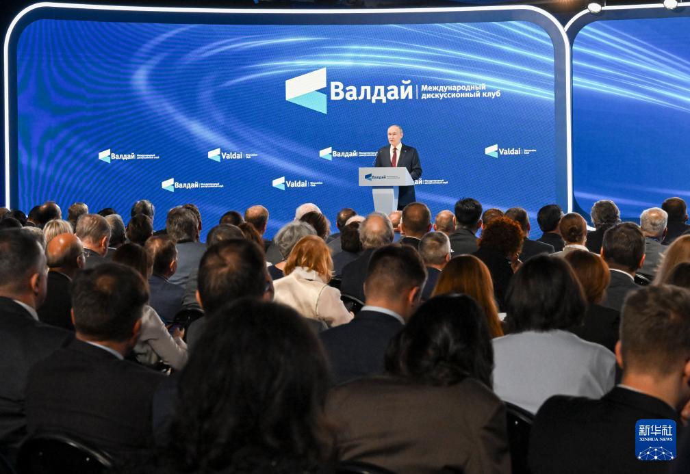 10月2日,在俄羅斯索契,俄羅斯總統普京出席俄智庫瓦爾代國際辯論俱樂部第22屆年會全體會議并發表講話。