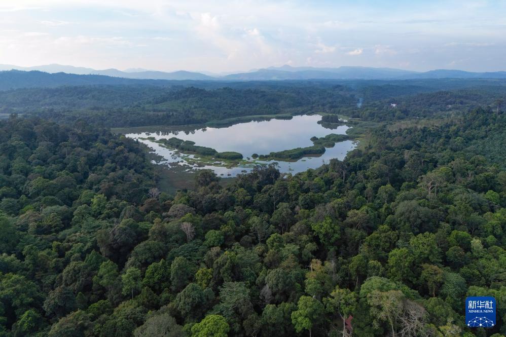 這是9月3日在馬來西亞彭亨州拍攝的珍尼湖生物圈保護區景色(無人機照片)。
