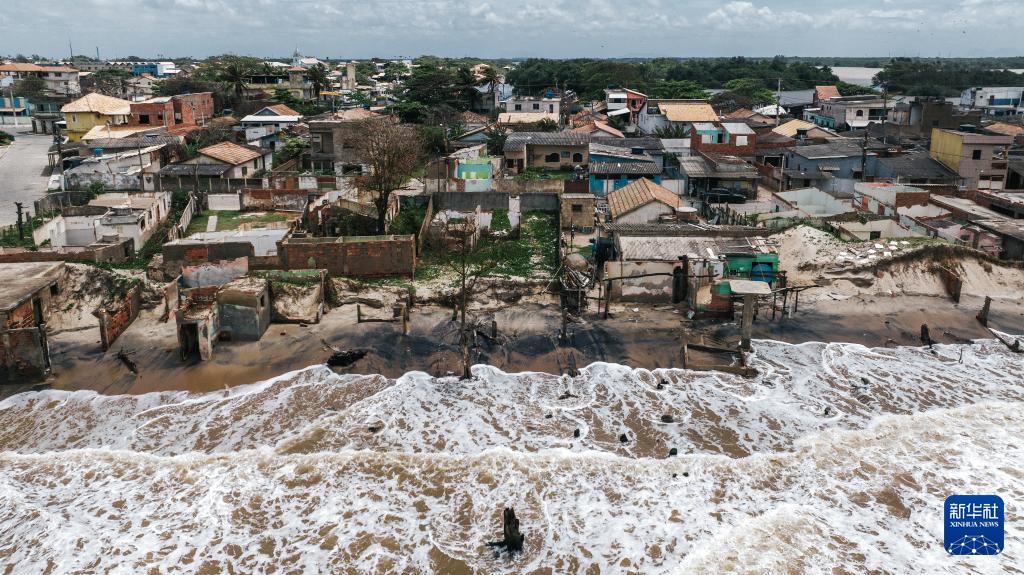 這是10月4日在巴西里約熱內(nèi)盧州阿塔福納拍攝的受海岸侵蝕影響的民房(無(wú)人機(jī)照片)。