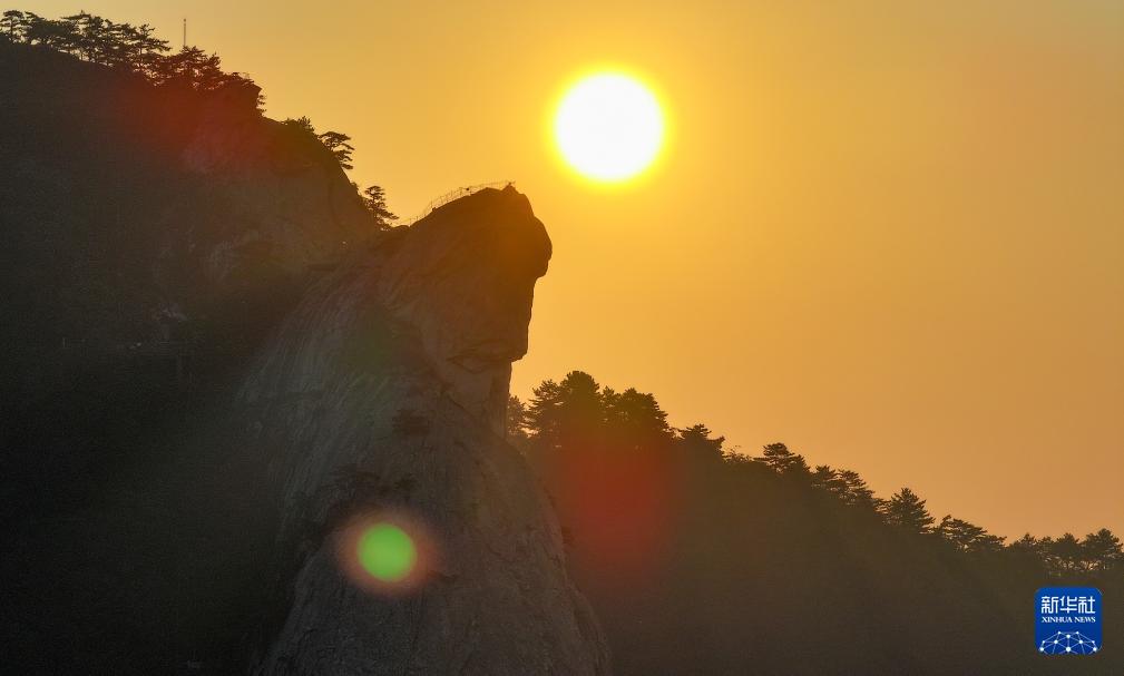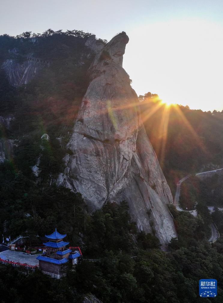 秋日清晨,初升的太陽(yáng)照在湖北省麻城市龜峰山景區(qū)的奇峰怪石上,勾勒出"龜峰旭日"的壯麗景象。