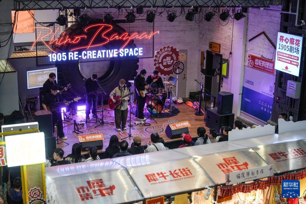 10月6日,游客在沈陽1905文化創(chuàng)意園內(nèi)觀看樂隊(duì)演出。