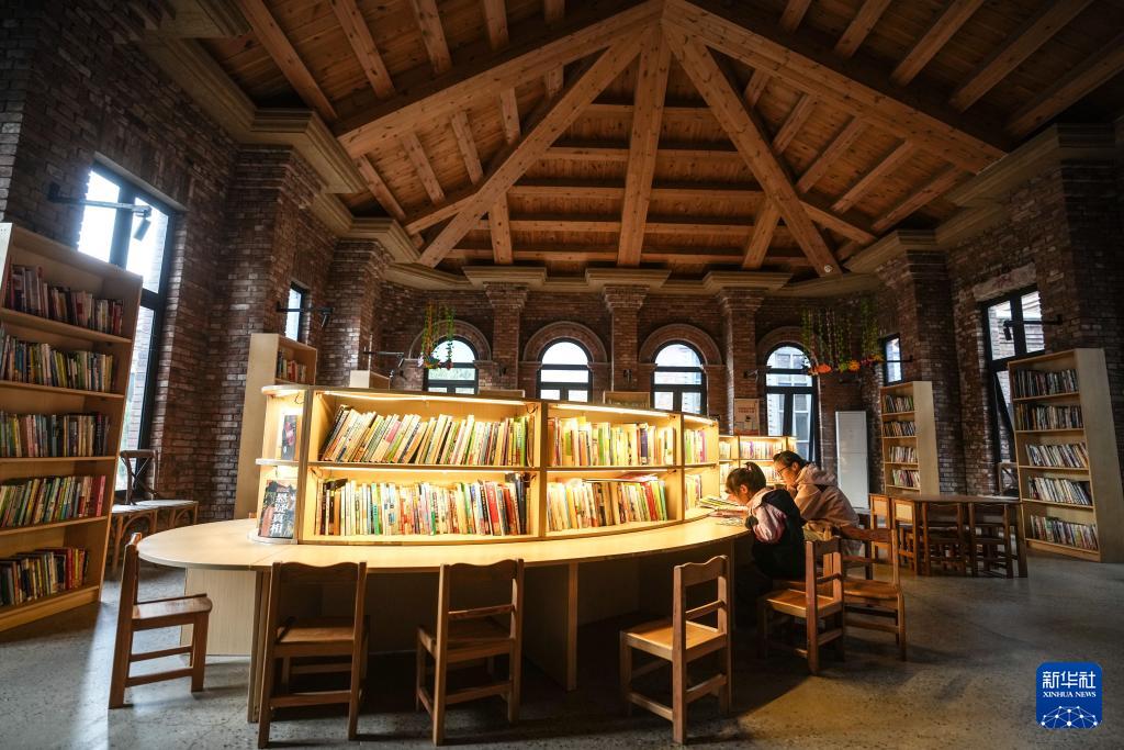 10月6日,游客在沈陽奉天工廠文創園內的城市書房內閱讀。