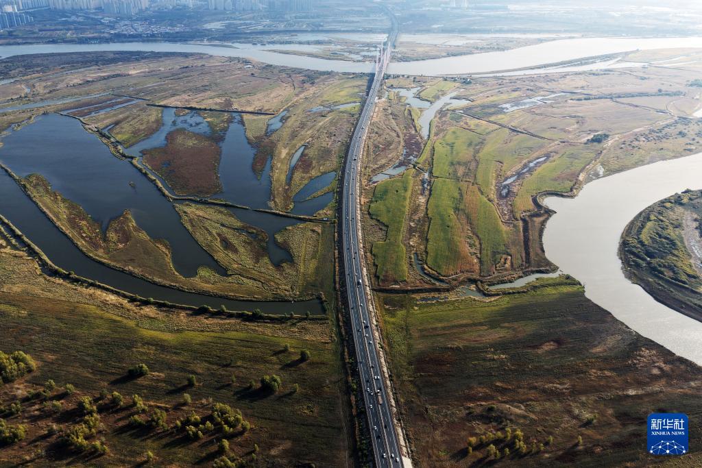 這是10月7日拍攝的哈爾濱群力外灘濕地公園景色(無人機照片)。