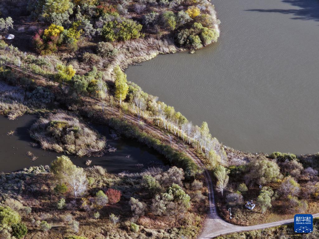 這是10月7日拍攝的哈爾濱太陽島國家濕地公園景色(無人機(jī)照片)。