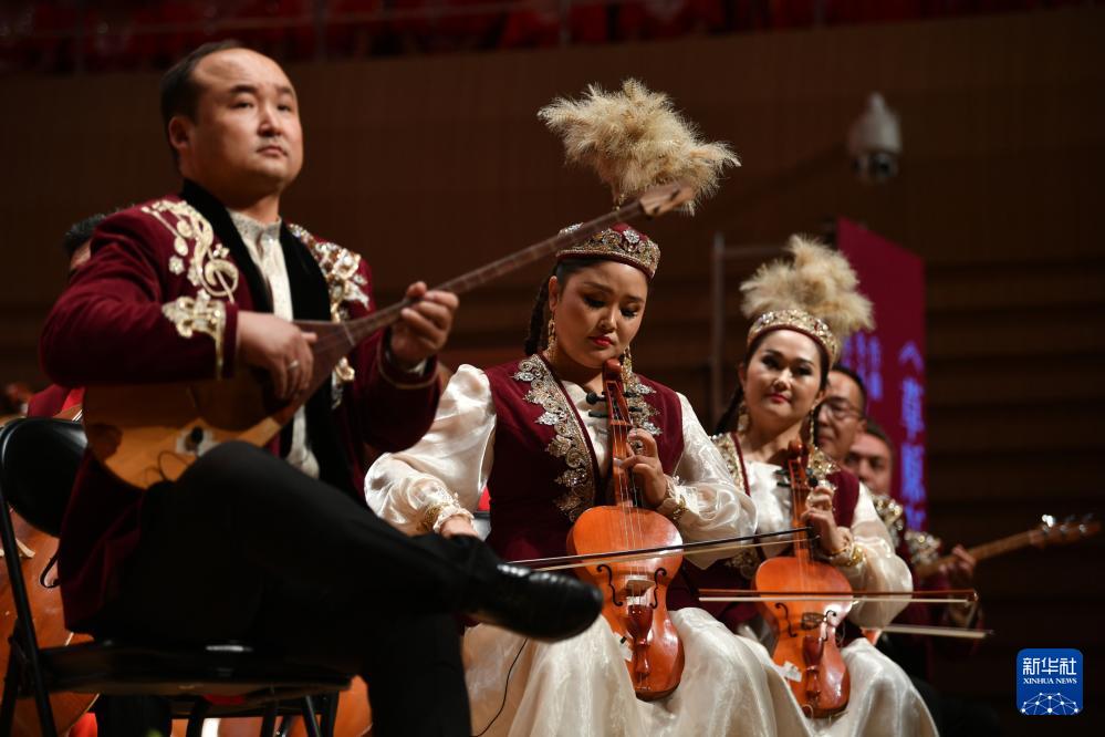 10月7日,演員在音樂會現場演奏《草原狂想曲》。