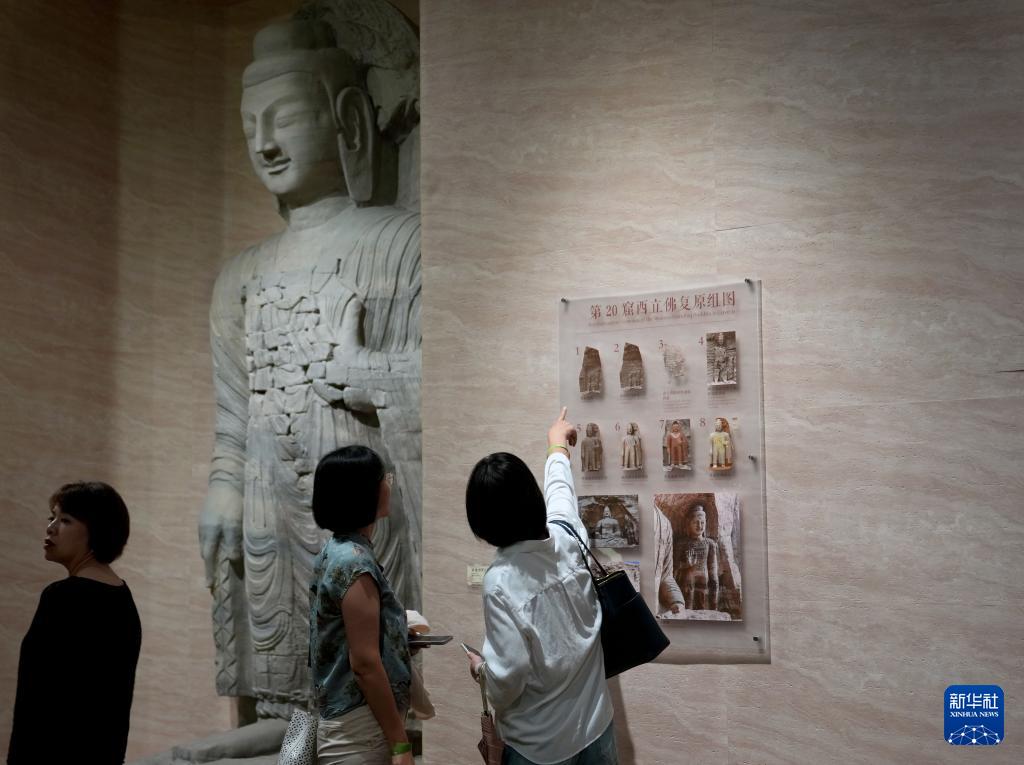 10月9日,參觀者在趣看美術(shù)館參觀云岡文物。