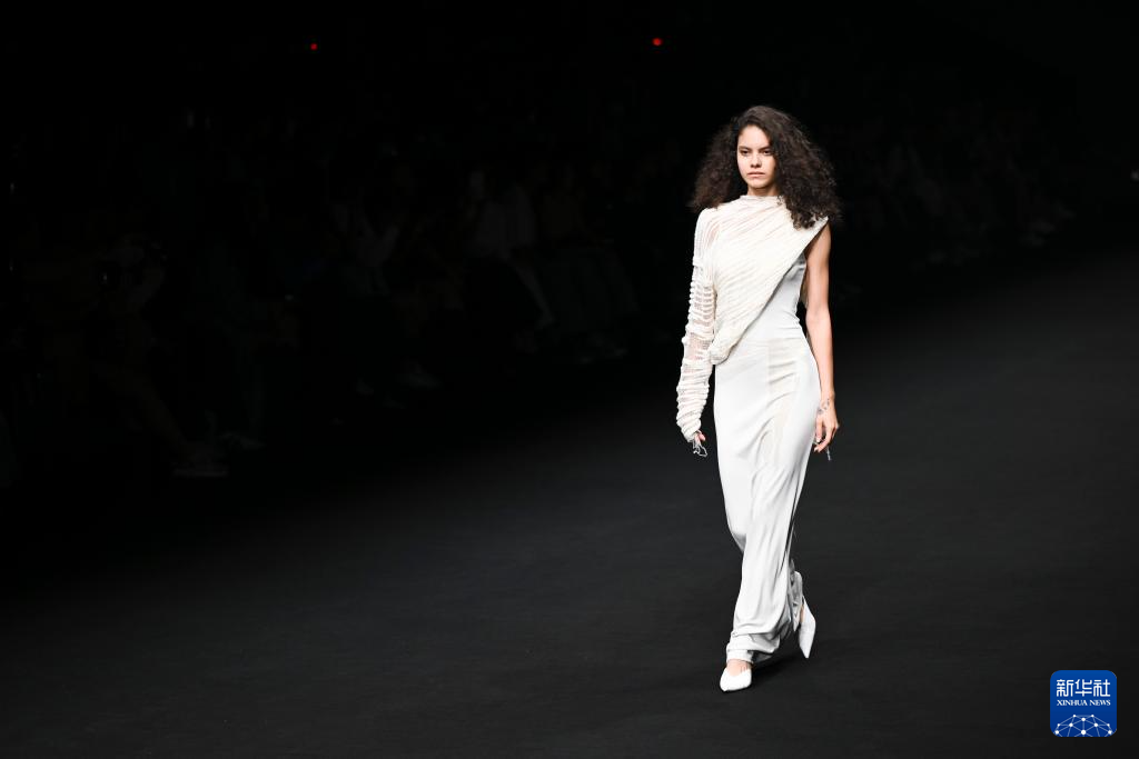 10月9日,模特在2026春夏上海時裝周上展示SENSEAWEEK品牌時裝。