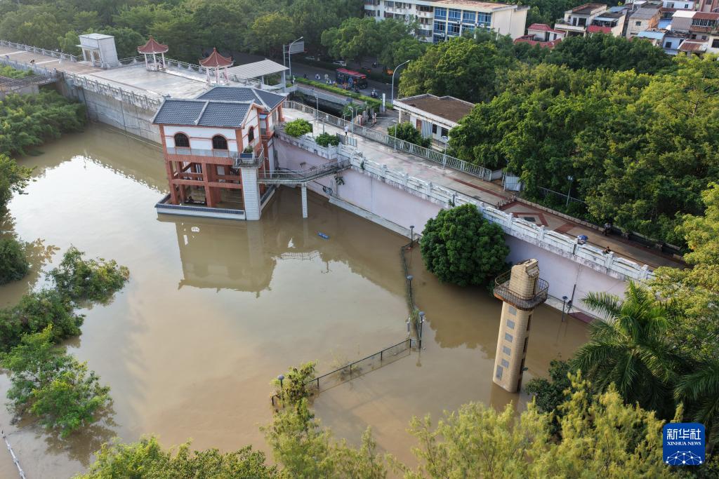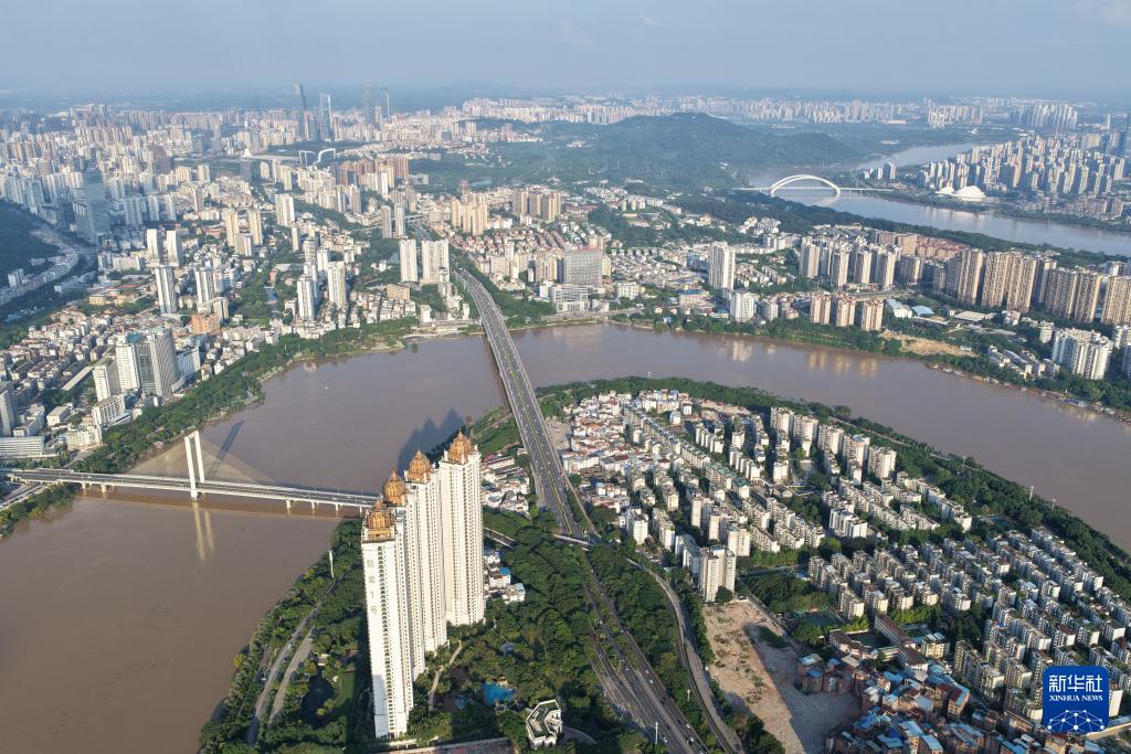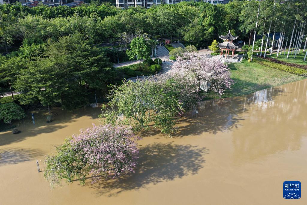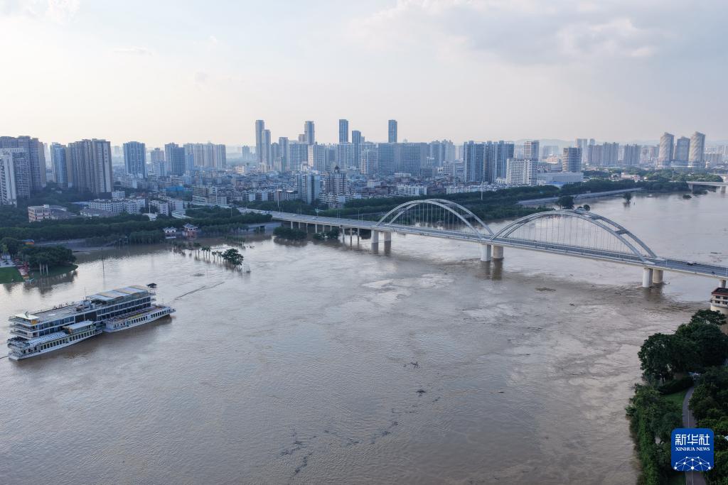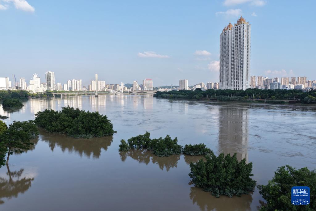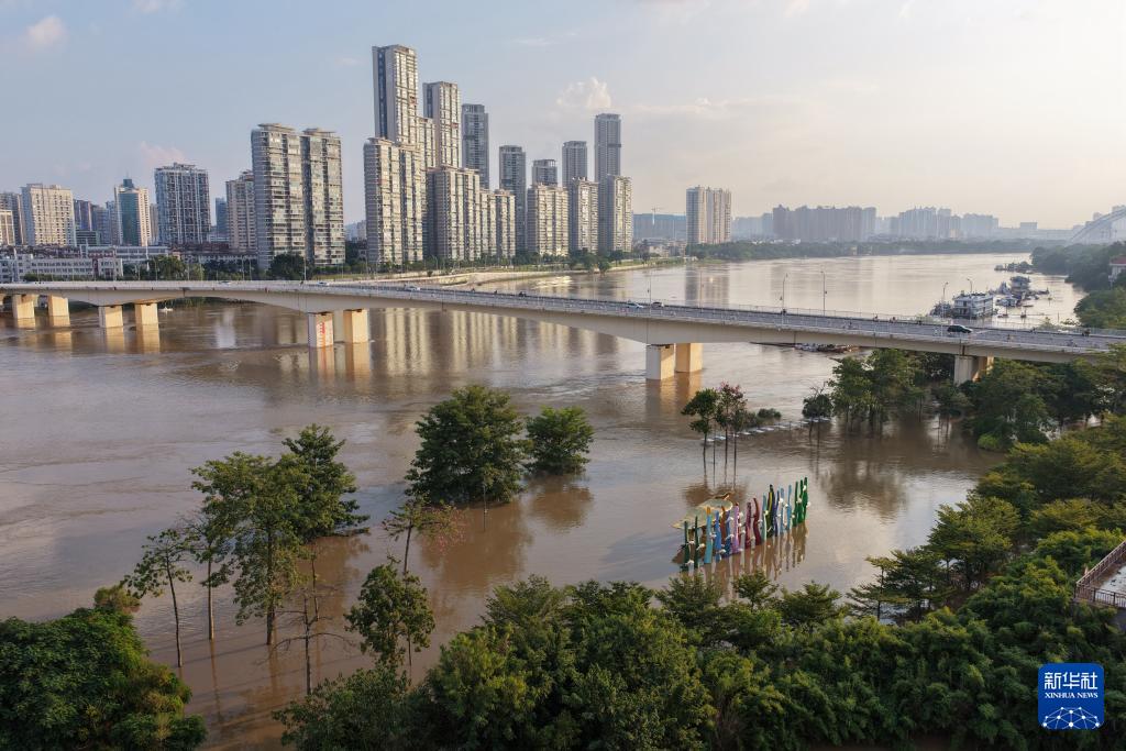 10月8日,邕江南寧市區(qū)河段水位不斷上漲(無人機照片)。