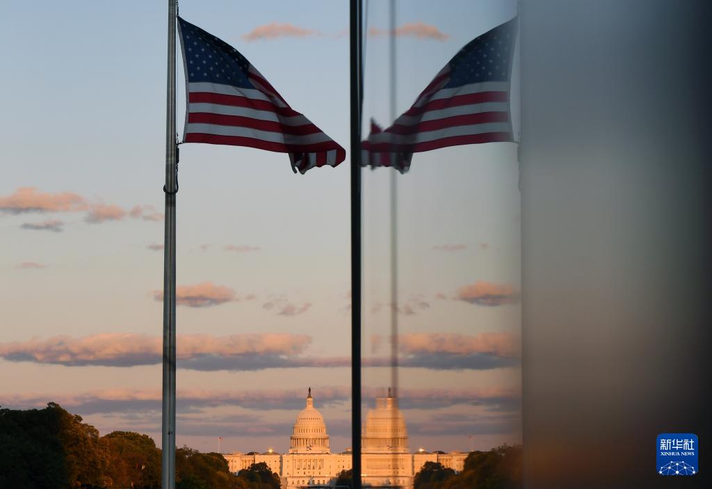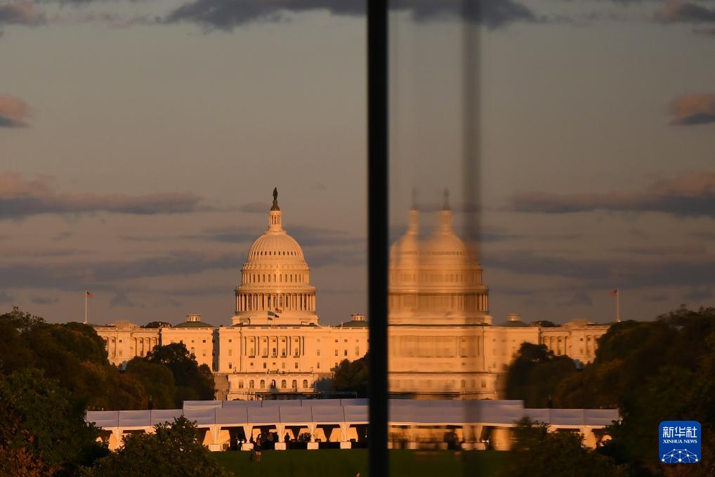 這是10月8日在美國華盛頓拍攝的日落時分的國會大廈。