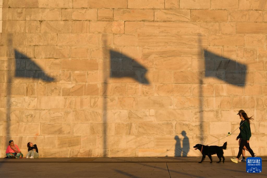 10月8日,在美國華盛頓,人們在華盛頓紀念碑前休閑。