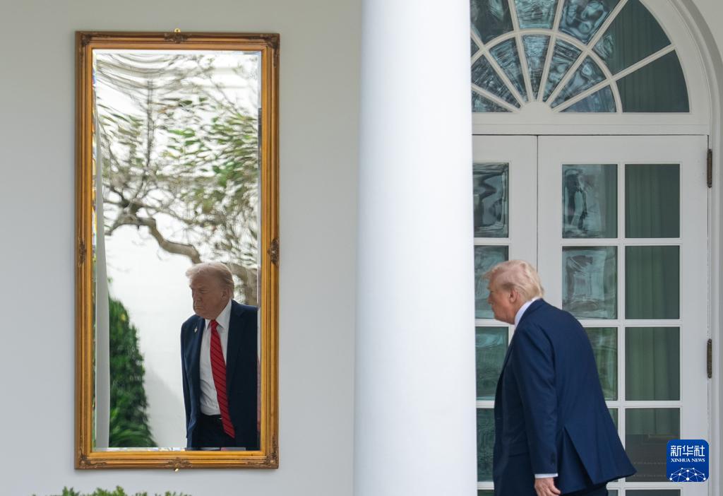 10月10日,在美國(guó)首都華盛頓,美國(guó)總統(tǒng)特朗普返回白宮。新華社記者 胡友松 攝