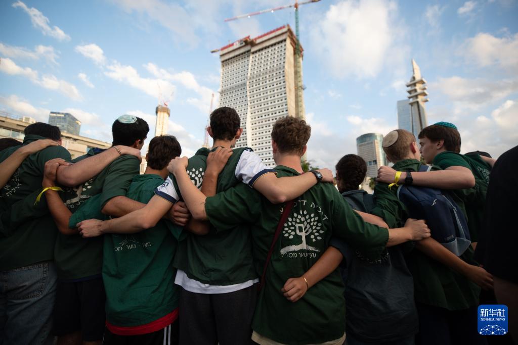 10月9日,在以色列特拉維夫,人們獲悉加沙停火協(xié)議的消息后相互慶祝,期待被扣押的人員早日獲釋。新華社記者 陳君清 攝