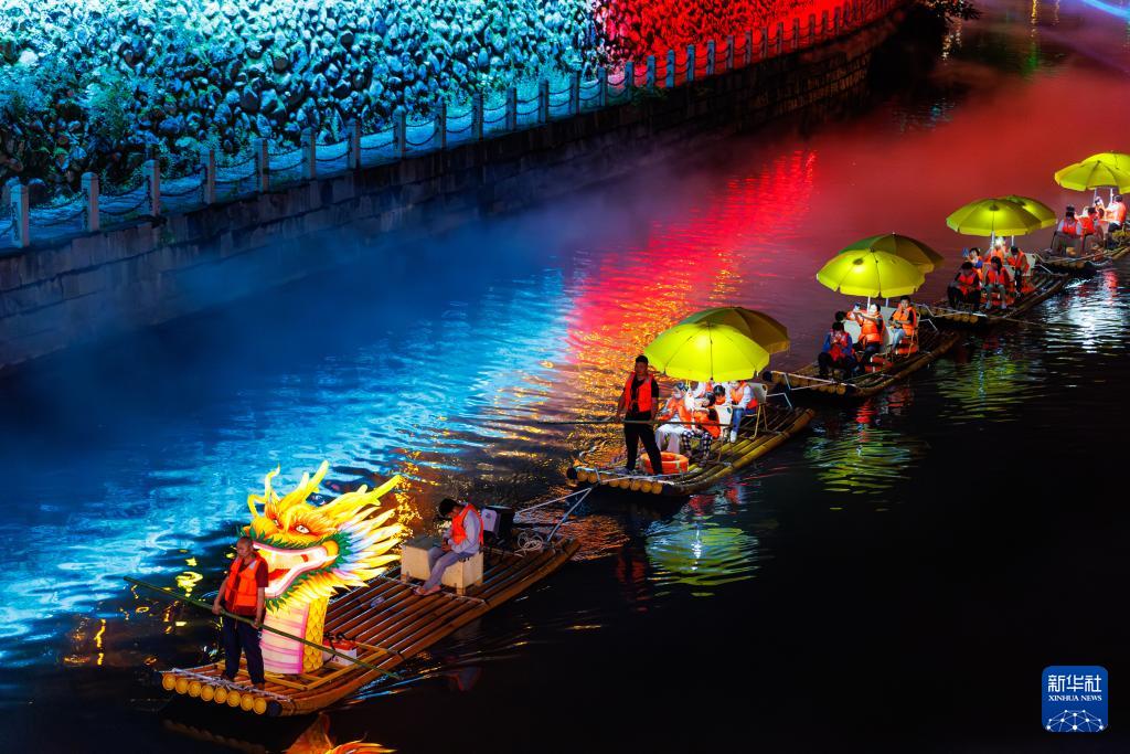 10月6日,游客在福建省長汀縣體驗"夜游汀江"項目。新華社記者 李昊澤 攝