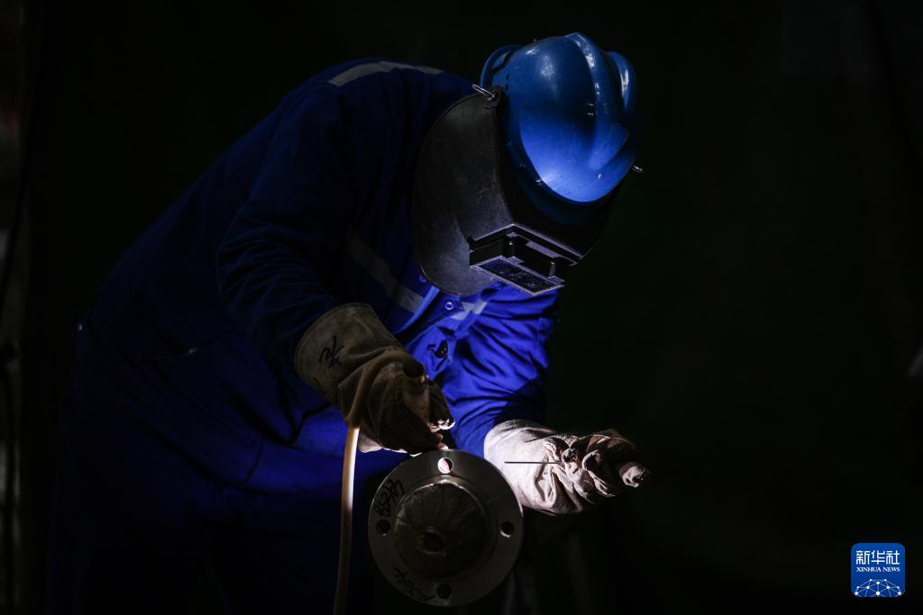 10月10日,工作人員在華錦阿美精細化工及原料工程項目現(xiàn)場施工。