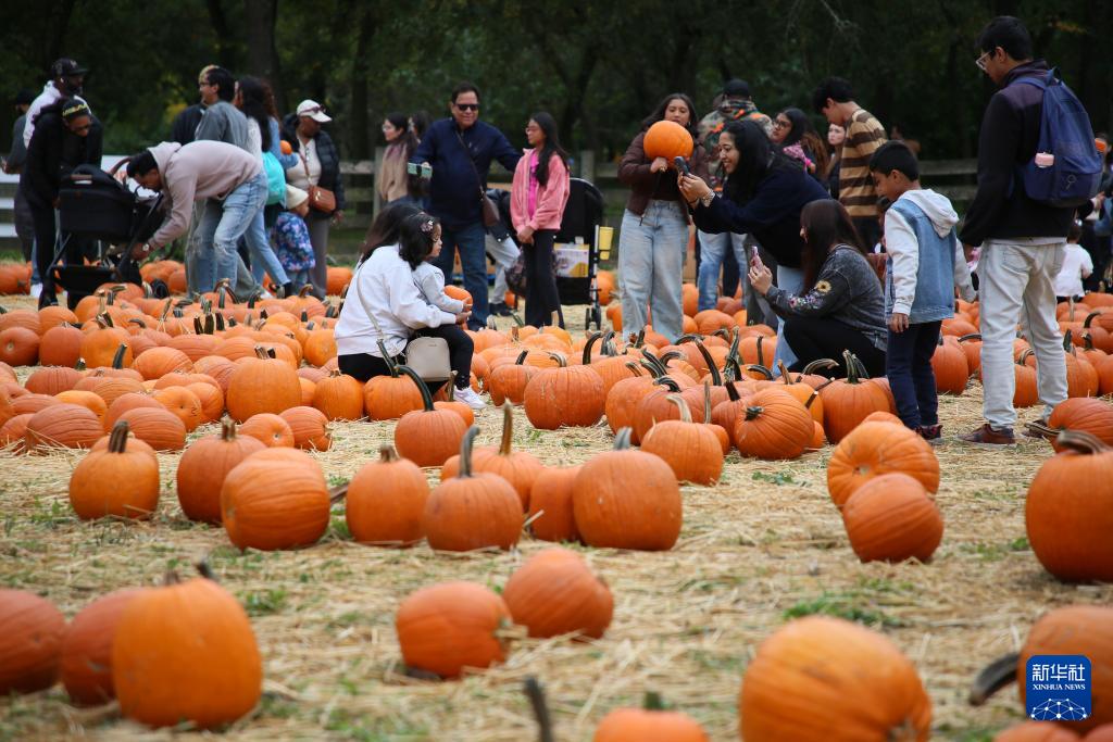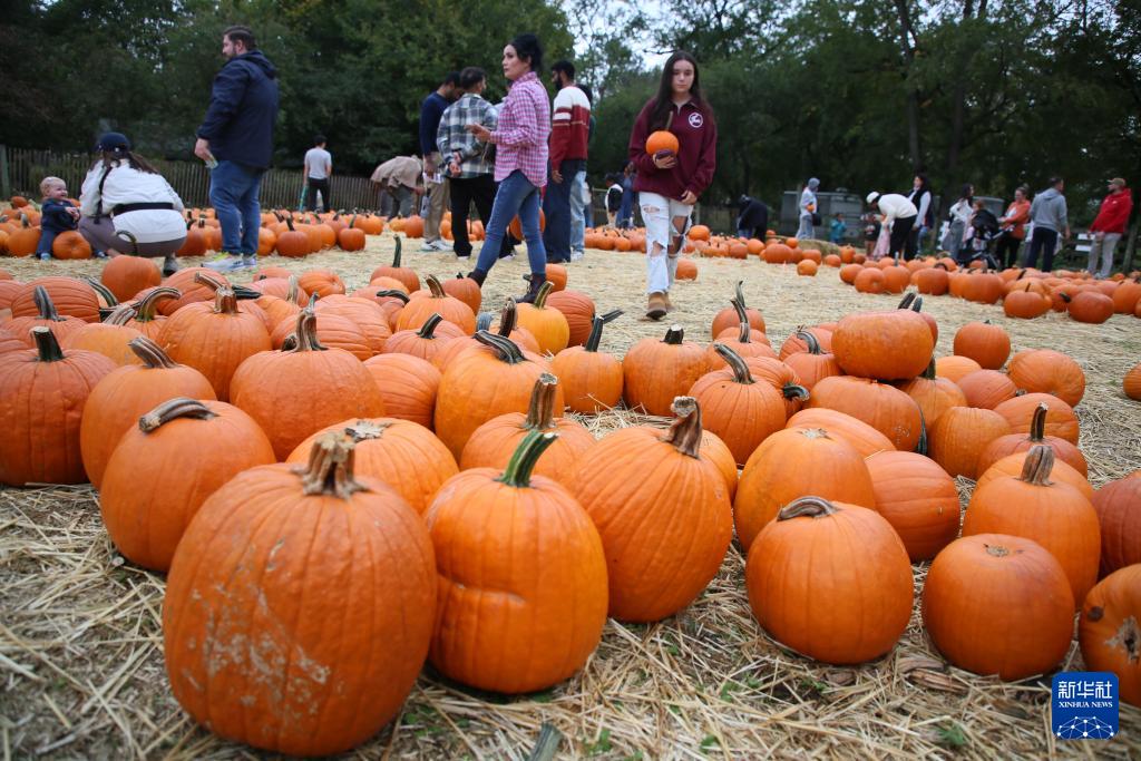 人們在南瓜集市上觀賞、挑選南瓜,慶祝金秋和豐收,為即將到來的萬圣節做準備。