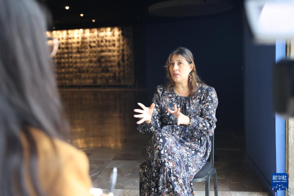 9月29日,在墨西哥首都墨西哥城大神廟博物館,館長帕特麗夏·萊德斯馬·布尚接受新華社記者采訪。