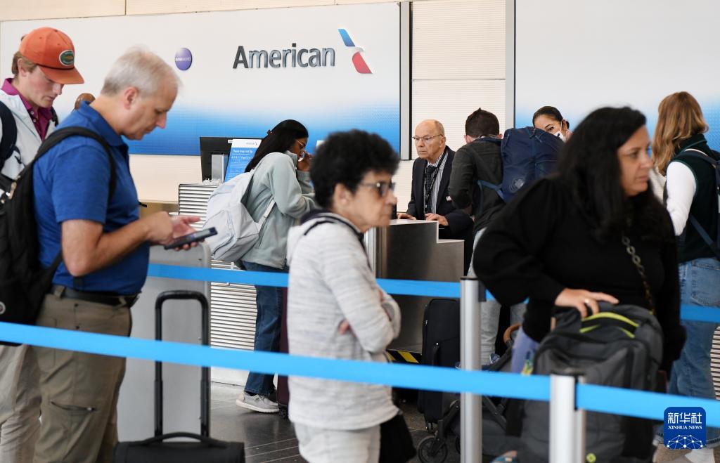 10月10日,在美國弗吉尼亞州阿靈頓的里根國家機場,人們辦理值機手續(xù)。