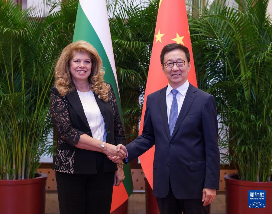 10月13日下午,國家副主席韓正在北京會見來華出席全球婦女峰會的保加利亞副總統約托娃。新華社記者 丁林 攝