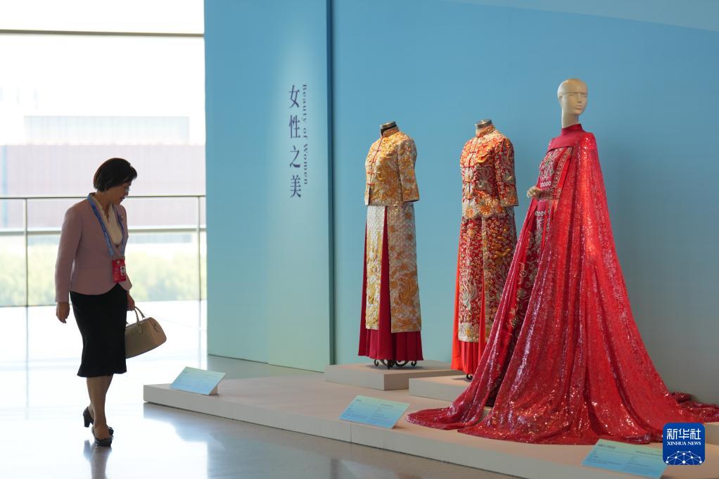 10月13日,參會嘉賓參觀全球婦女峰會女性主題特展"華韻承芳·非遺共賞"。