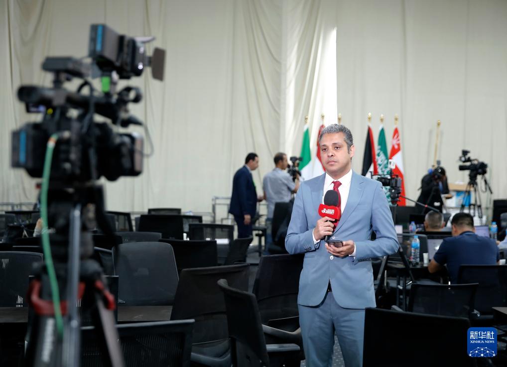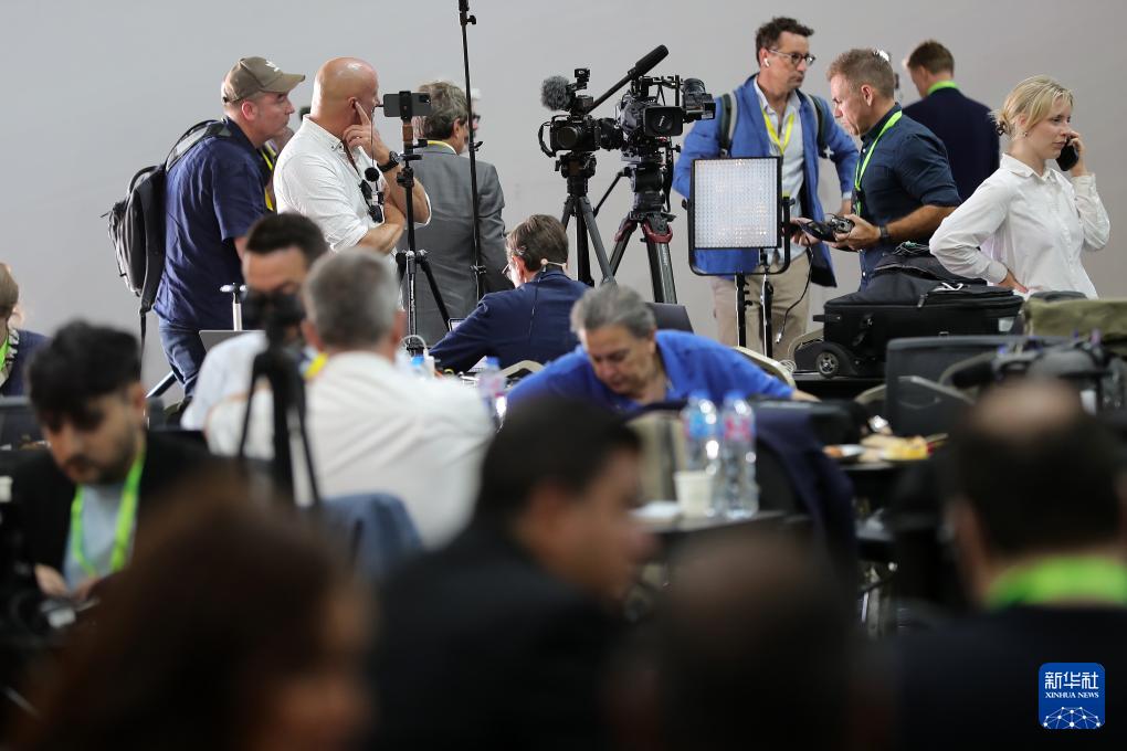 10月13日,在埃及沙姆沙伊赫,記者在沙姆沙伊赫峰會的媒體中心工作。