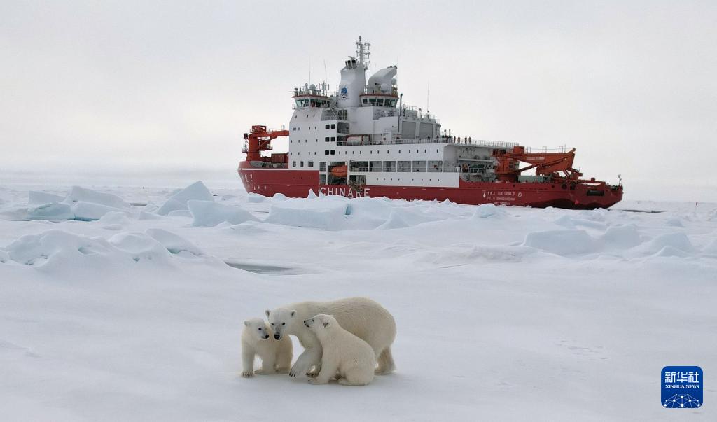 8月30日夜,在距離中國第15次北冰洋科學(xué)考察隊(duì)長期冰站作業(yè)結(jié)束還剩一天時,一只北極熊媽媽帶著兩只熊寶寶出現(xiàn)在了考察隊(duì)員搭乘的“雪龍2”號極地科考破冰船船邊。