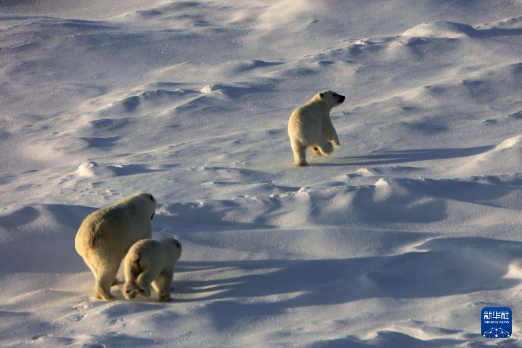 8月31日,北極熊媽媽和兩只熊寶寶離開考察隊冰上作業區。