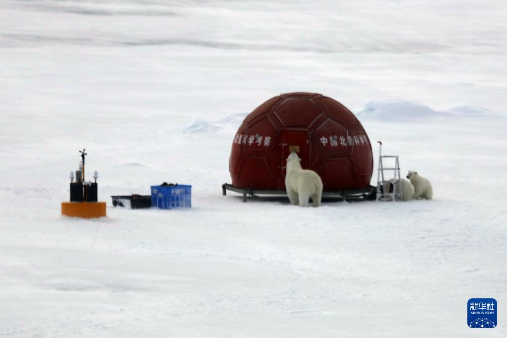 8月30日夜,在距離中國第15次北冰洋科學考察隊長期冰站作業結束還剩一天時,一只北極熊媽媽帶著兩只熊寶寶出現在了考察隊員搭乘的“雪龍2”號極地科考破冰船船邊。