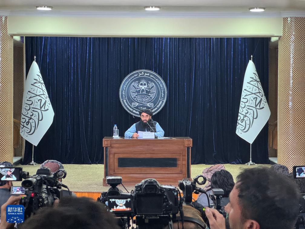 10月12日,阿富汗政府發言人扎比烏拉·穆賈希德在首都喀布爾舉行的記者會上發言。