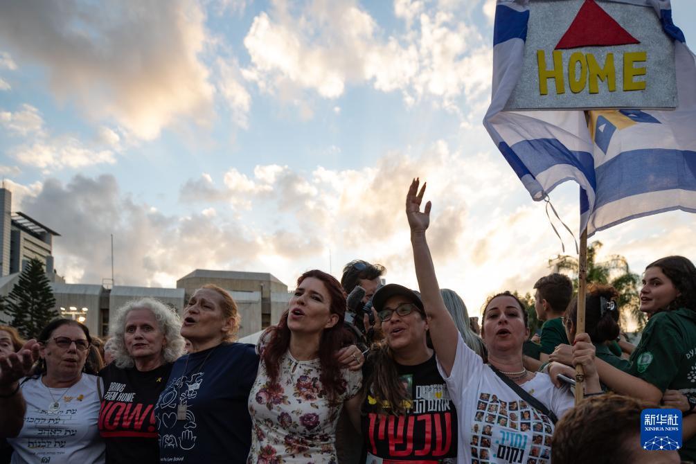 10月9日,在以色列特拉維夫,人們獲悉加沙停火協議的消息后相互慶祝,期待被扣押的人員早日獲釋。