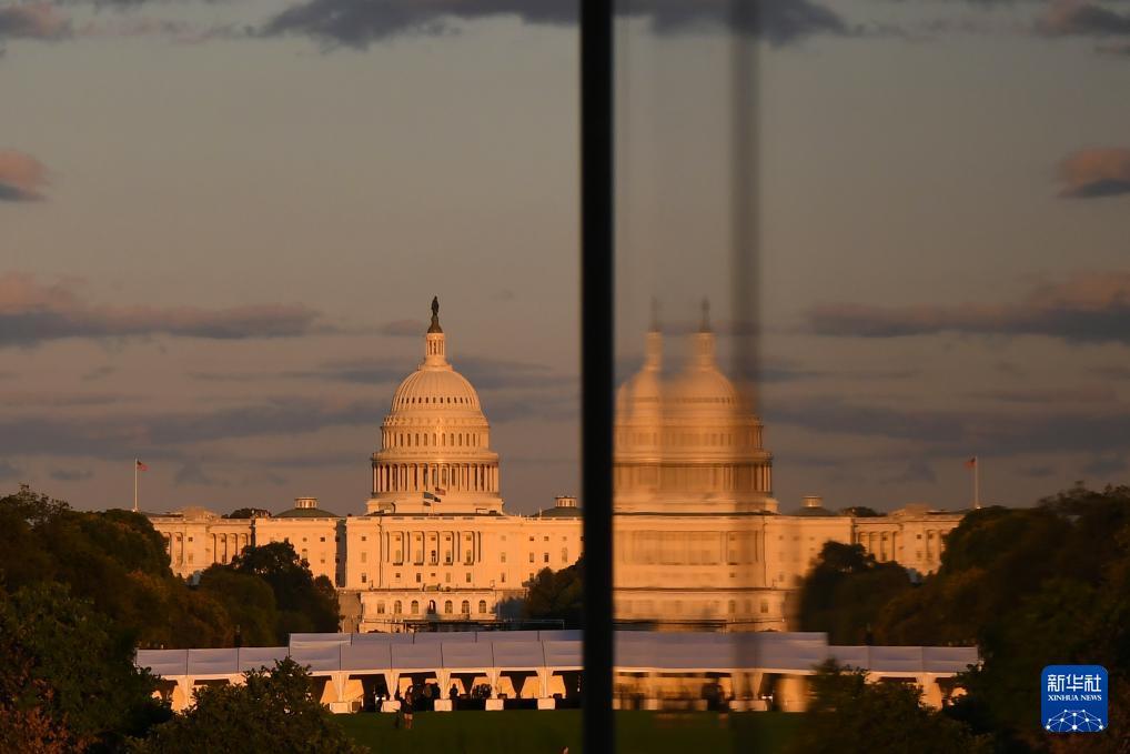 這是10月8日在美國華盛頓拍攝的日落時分的國會大廈。